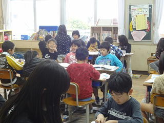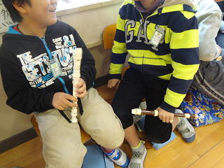 3年生になって初めて取り組んだリコーダー・・・。随分上達していますよ。お互いに聴きあったり・・・教え合ったり・・・。