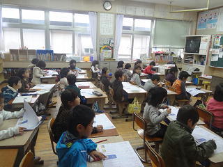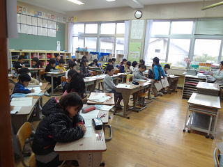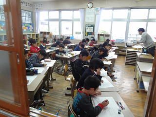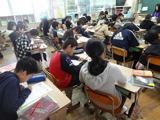 まとめの時期・・・。5年生はプリントを中心にまとめを行っていました。真剣です。
