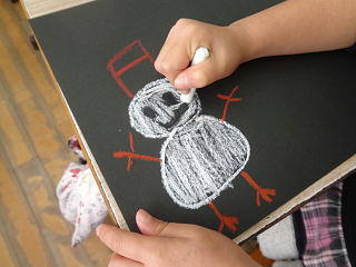 プレゼントを作っていましたよ。だれにあげるのでしょうね?