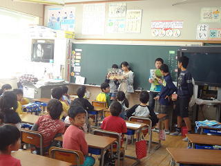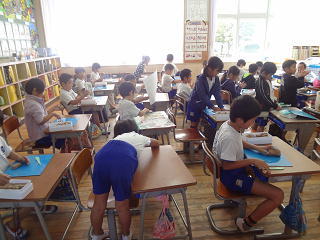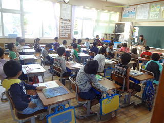 今日は、読み聞かせの方々が来校されました。まずは、おおきな声でのあいさつ・・・。どの教室からもあいさつの声が響いていました。
