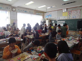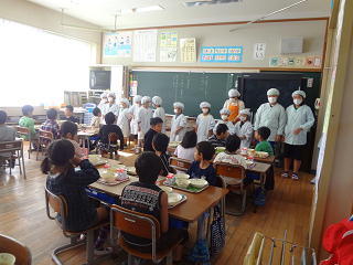 「ありがとうございました。」・・・・。給食を作っていただいたり、牛乳やパン等を届けていただいた方々へ感謝の気持ちを伝えていました。