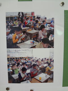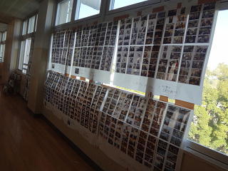 修学旅行や音楽祭でのシーンが写真になって掲げてあります。子供たちは、なつかしそうに眺めていました。
