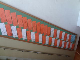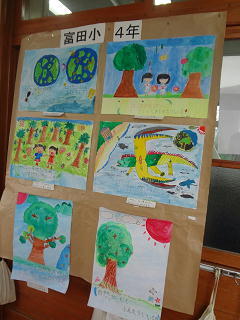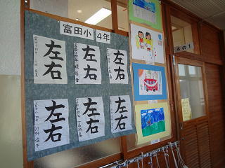 4年生廊下には、学校代表の作品が掲げてありますよ。夢あふれる作品の数々・・・。