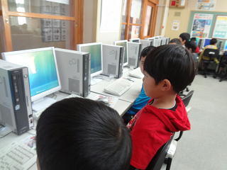 先生から一つひとつ学んでいました。子供たちは緊張した表情でパソコンにむかっていました。
