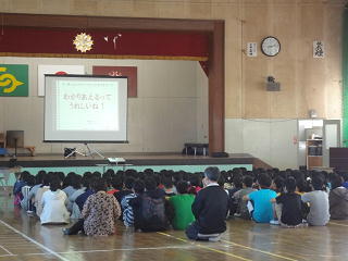 集会では、みんなで学年ごとに詩の朗読を行いました。