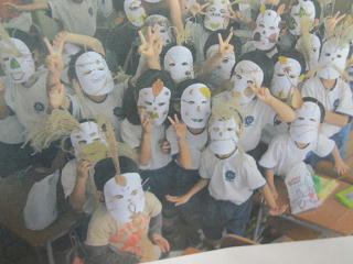 生活科でお面を作りました。楽しいお面で変身・・・ですね。