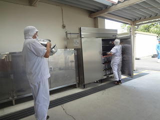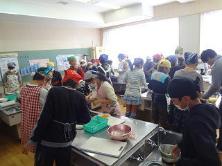 給食室の方々が時間と闘いながら、必死で準備をされていました。いつも温かい給食をありがとうございます。