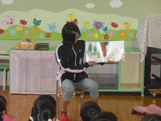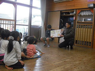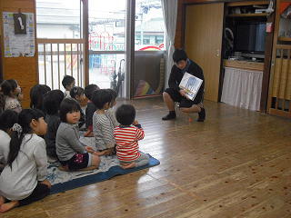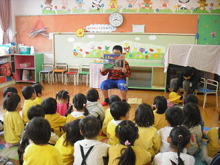 読み聞かせ・・・。前日から練習して、園児たちを夢中にさせました。