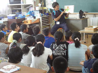 本日は学級担任の先生方が隣のクラスを訪問しての読み聞かせ・・みんな身を乗り出して聞いていました。