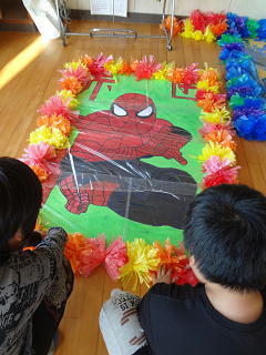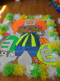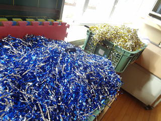 バンダナをつけ、ボンボンをもち最後の仕上げに懸命でした。