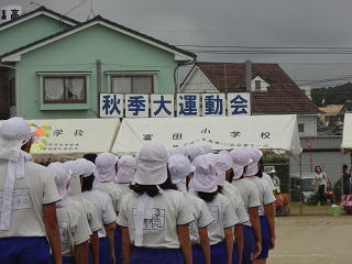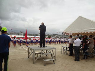 児童代表の開会の言葉・・・そして校長先生からは、たくさんの方々の力で運動会が開催されること、それを忘れずに、感謝しながら、力を尽くすことの大切さについてお話がありました。