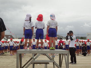 力強く、闘志みなぎるエールの交換・・・。その姿に観客のみなさんや全校児童のみなさんは感動・・・。拍手喝さいでした。これまでの力を出し尽くした素晴らしい姿でした。