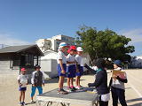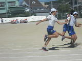 昼休み・・・寸暇を惜しんで、バトンパスの練習を行っていました。先生にコツを学び、身につけようとみんな懸命でした。