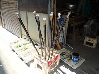 6年生が運動会の「元禄ぼうず踊り」で使う道具の制作・修理・ペンキ塗り等が始まっています。