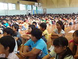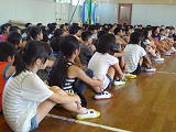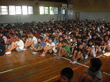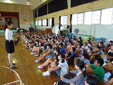全校集会では、校長先生や生徒指導の先生のお話を熱心に聞き、夏休み終盤のすごし方等について気持ちを新たにしていました。校長先生は、お話の中で先日の「甲子園での延岡学園」の素晴らしいがんばりをたたえられ、自分たちの生活でもがんばることの大切さ等も語られました。
