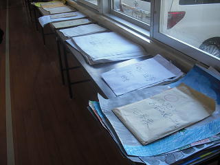 児童のみなさんが懸命に取り組んでいる課題を集めるための準備が始まりました。