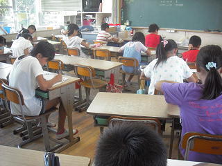 帰りの会で楽しい夏休みのすごし方等についてお話を聞いた後、みんな元気に帰っていきました。次の登校日は8月20日です。元気に過ごしてくださいね。