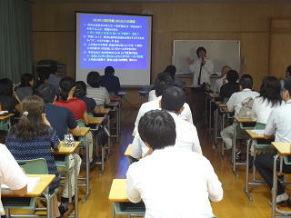 8月20日、富田中学校で子供たちの理解を深めるための研修を行いました。前半は講師の先生をお招きし、最近の脳科学についてのお話をうかがいました。