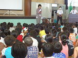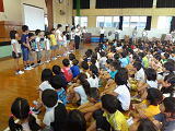 転入してきたお友達の紹介や校長先生をはじめ、生徒指導や学習指導、体育指導の先生方のお話がありました。子供たちは、夏休みをふり返り、2学期のはじまりにあたって、気持ちを新たにしていたようでした。