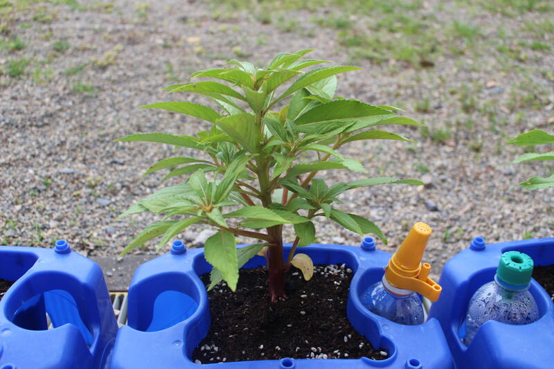 3年生の理科の学習で「ほうせんか」を育てています。どのほうせんかも茎が太く元気に育っています。きれいな花が咲くのが楽しみです。