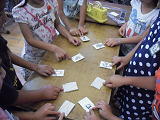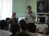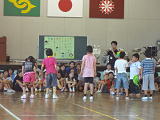 今日はアメリカから来られたアレックス先生と1学期最後の活動!最後は、果物の名前の発音を何回も繰り返し・・・、みんなでフルーツバスケット!覚えたての果物を発音してゲームは盛り上がっていきました。