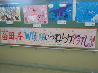 代表委員会のみなさんによる「運動会のスローガン」が本日、校内3か所に掲げられました。