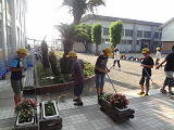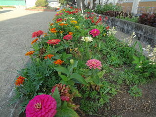 色とりどりに咲いています。・・・1年生の子供も先生方も、それを眺めながら、嬉しそうです。