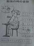 本校では勉強の時の姿勢について、図のような姿勢を保てるように、全校で取り組んでいます。・・つい崩れがちな姿勢・・・。