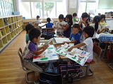 みんなで、夏休みに読む本を借りに図書館へ行きました。