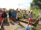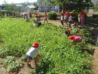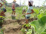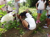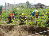 みんなで観察したり、畑の草抜きをしたりもしました。なかなか抜けない草と奮闘する場面もあり、苗を育てる苦労なども感じていたようでした。