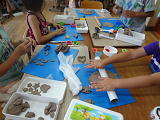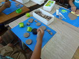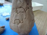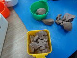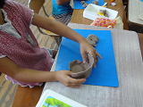 型を抜いたり、粘土に型をつけたり・・・。お弁当を作ったり、つぼをつくったり・・・。型抜きを楽しんでいました。