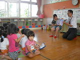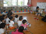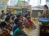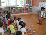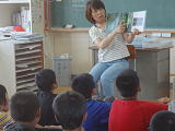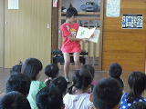 本日担当の児童は、直前まで練習していました。そして本番はやさしく語りかけるような読み方で園児たちを引きつけていました。とても上手でした。