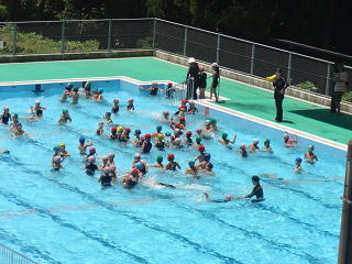 充分、泳いで、本年度のプールの納会を行いました。日焼けの後が、懸命な取組を感じさせました。