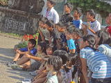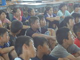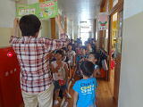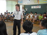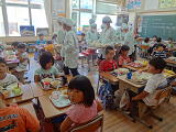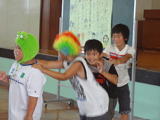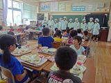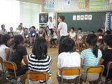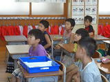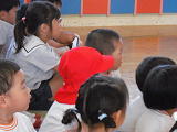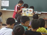 子ども達は、「ふるさと」等の歌をプレゼントしたり、ゲームをしたり・・、いっしょに給食を食べたり・・、遊んだり・・・。仲良くなろうと、身ぶり手ぶりも交えて、交流をしていました。