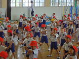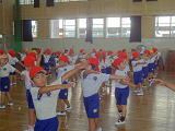 今日は、まずラジオ体操の練習・・・、そしてダンスの曲目発表・・・、1ポイントレッスン等が行われていました。