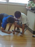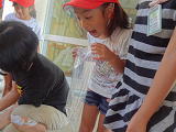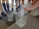ビニールの袋に1ℓの水を想定して・・・、一リットルの容器に入れていました。水が足りなかったり・・・、あふれたり・・・、生き生きとした表情で観察していました。