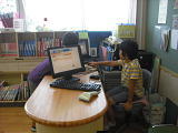 図書室では、委員会のみなさんが、本の貸し出しや返却の作業をしたり・・・。