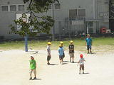 運動場では、思い思いに体を動かしたり・・・、クラスで遊んだり・・・。