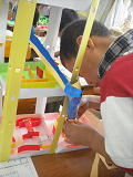 「コロコロガ―レ」さまざまな仕掛けをしようと、子供たちは集中して取り組んでいました。