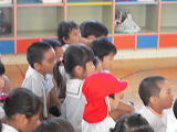 1 交通事故にあわないように気を付けること 2 水辺に近付かないこと 3 熱中症対策のために水分・塩分をこまめに取り、つねに帽子を着用すること 4 お店では先日の防犯学習で学んだことを生かすこと 5 言葉に気をつけて、やさしい気持ちで生活が送れるように心がけること・・・。という内容でした。