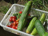 大きなきゅうりやトマト・・・。たくさん取れました。子供たちは嬉しそうでした。