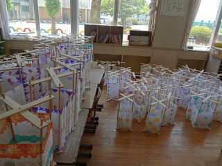 6年生が自分の夢を記した色とりどりの灯篭が、神社の道筋に並ぶそうです。