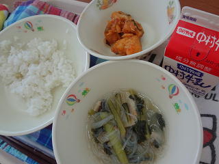 魚のオーロラ煮・・・。揚げた魚とオーロラソースをからめた給食メニューを子供たちは、おいしそうに味わっていました。給食も1学期は明日まで・・・ですね。