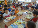 6年生が配膳をしてしてくれる中、1年生は姿勢よく、静かに待っていました。