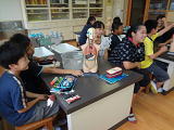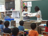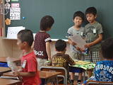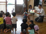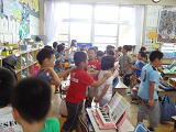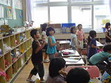 鍵盤ハーモニカを演奏したり、夏祭りを歌って踊ったり・・・、じゃんけん列車を歌いながら活動したり・・・。楽しさまんてんの様子でした。
