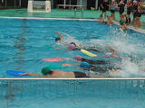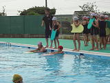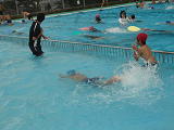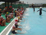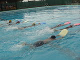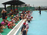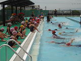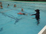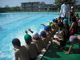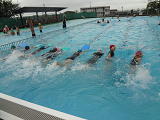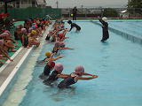 バタ足を鍛えるコース・・、泳ぎ方の「かき」を極めるコース・・、浮力をうまく生かすコース・・・、それぞれのコースで懸命に取り組んでいました。「つめたい!」と言いつつも、みんなで泳ぐのが嬉しくてたまらない様子でした。