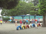 久しぶりの太陽の下で、子供たちは大喜び・・・。日差しをあびながらの活動でした。