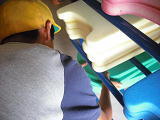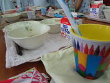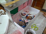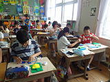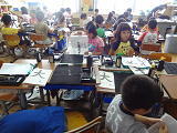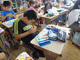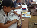 小物作りに入っています。針と糸、そしてアイディアを使っての制作です。みんな楽しそう・・・、そして真剣!