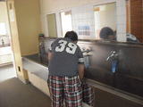 本日6時間目の活動の時間に、全校のみんなのために手洗い場を念入りに磨いていました。