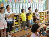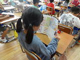 さまざまな工夫を行っているようです。お互いにその様子をみて、終わったら、みんなでふり返って、よりよい読み聞かせについて意見を出し合っているようです。